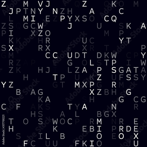 Matrix background. White sparse alphabetical background. Small sized seamless pattern. Attractive vector illustration.