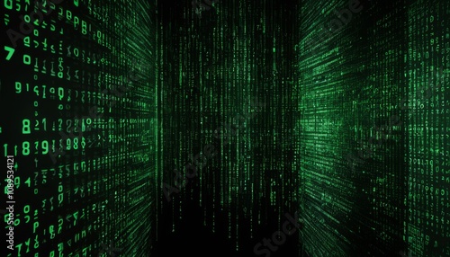 Matrix-inspired digital background with cascading green binary code and futuristic vibe