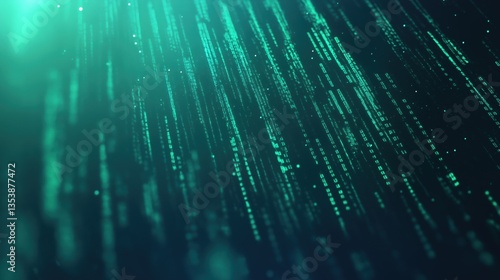 Matrix-style digital rain background in shades of blue and green, representing data streams and technology
