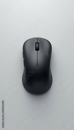 Matte Black Wireless Computer Mouse on Plain Solid Light Gray Background