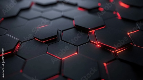 Matte Hexagonal Pattern with Glowing Red Edge Accents Against a Dark Background Ideal for Technology, Design, and Futuristic Themes