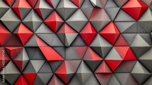 Matte triangular tiles with subtle depth, red and gray gradient color scheme generative ai
