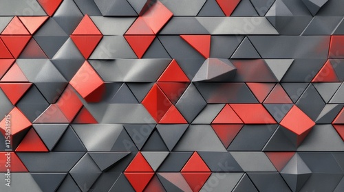 Matte triangular tiles with subtle depth, red and gray gradient color scheme generative ai