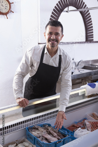 Mature man sells fresh fish