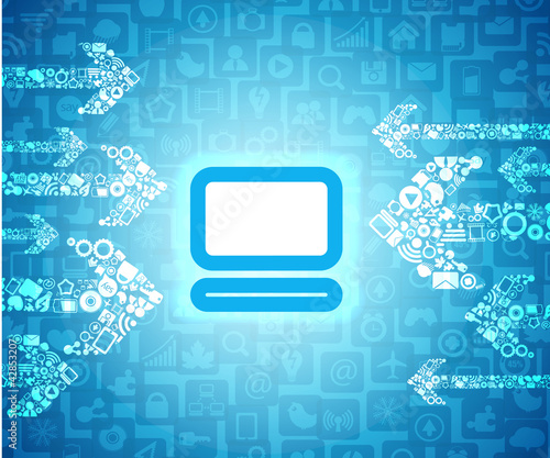 Media content arrows going to glowing computer pictogram
