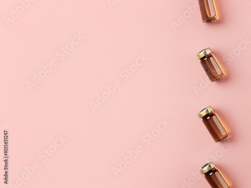 Medical ampoules forming diagonal line on pink background