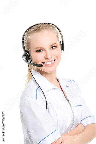 Medical call center operator isolated.
