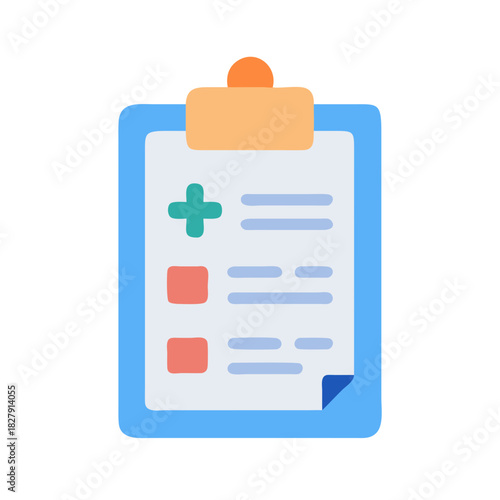 Medical clipboard with checklist and health cross flat illustration