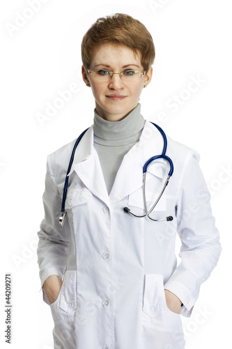 Medical doctor woman with stethoscope.
