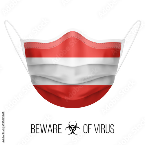 Medical Mask with National Flag of Austria as Icon on White. Protective Mask Virus and Flu. Surgery Concept of Health Care Problems and Fight Novel Coronavirus (2019-nCoV) in Form of Austrian flag