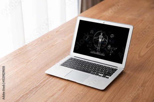Medical science technology and futuristic healthcare virtual computer software analyze human health and diagnose disease for doctor data and medical research. brisk
