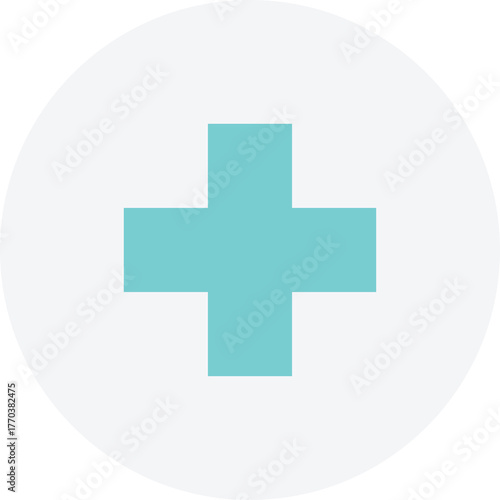 Medical Symbol of Turquoise Cross Inside a White Circle on Transparent Background