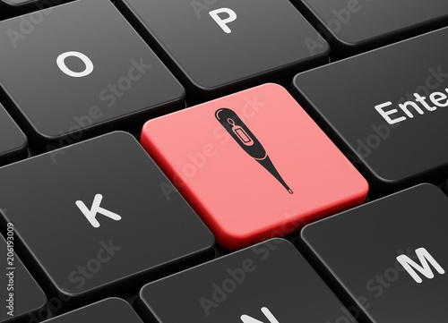 Medicine concept: computer keyboard with Thermometer icon on enter button background, 3D rendering