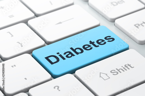 Medicine concept: computer keyboard with word Diabetes, selected focus on enter button background, 3D rendering