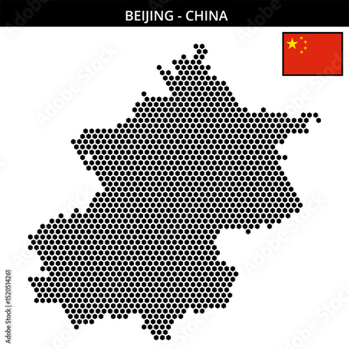 Medium hexagonal dotted map of Beijing in China