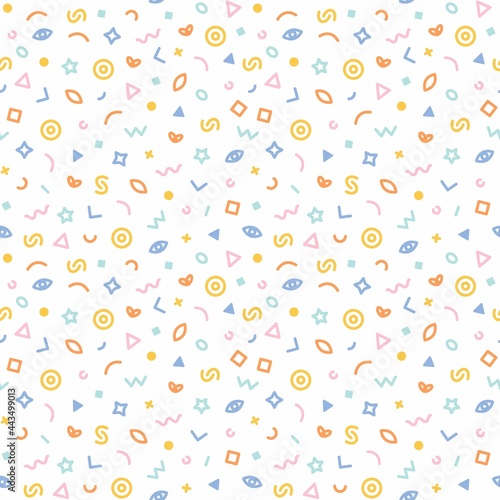 Memphis style seamless pattern. Abstract vector illustration with geometric elements, shapes.
