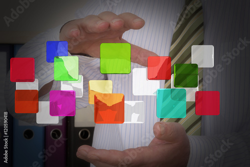 Men Hand and virtual Glasbutton