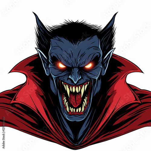 menacing vampire monster with glowing fangs and dramatic expression