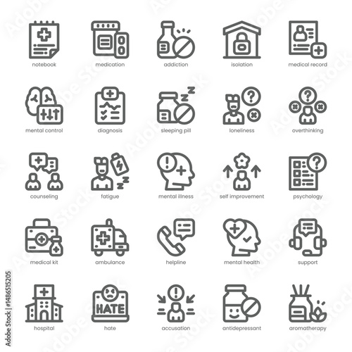 Mental Health Icon pack for your website, mobile, presentation, and logo design. Mental Health Icon outline design. Vector graphics illustration and editable stroke.