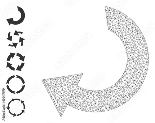 Mesh polygonal rotate icon with simple symbols created from rotate vector graphics. Frame mesh polygonal rotate. Wire frame 2D mesh in eps10 vector format.