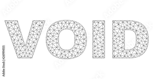 Mesh vector VOID text. Abstract lines and points are organized into VOID black carcass symbols. Linear frame 2D triangular mesh in eps vector format.