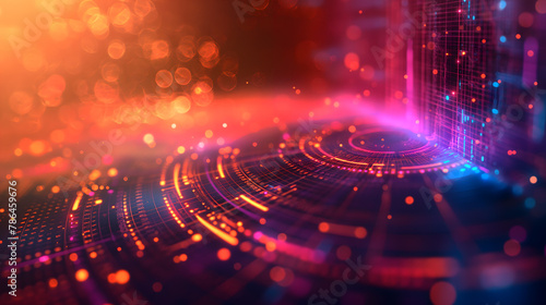 Mesmerizing Abstract Tech Data Grid with Vivid Neon Lights