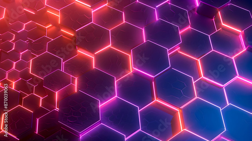 Mesmerizing neon geometric hexagon lattice background with radiant prismatic hues abstract minimalist art futuristic and architectural digitally rendered