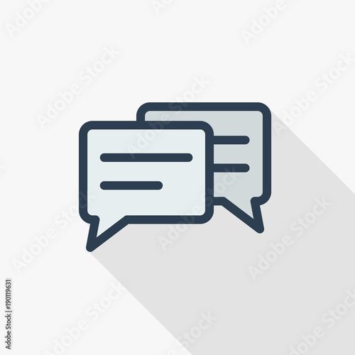 message, chat, speech bubble, talk, dialog thin line flat color icon. Linear vector illustration. Pictogram isolated on white background. Colorful long shadow design.