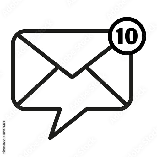 Message icon ten. New email notification. Speech bubble symbol. Vector communication graphic.