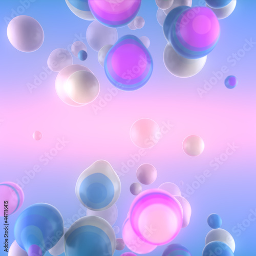 Metaball organic structure. Viscous droplets with gradient color. Depth of field. 3d rendering digital illustration