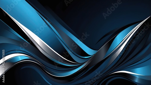 Metallic abstract reflections, chrome textures blending with dark blues and blacks.