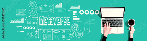 Metaverse theme with person using a laptop