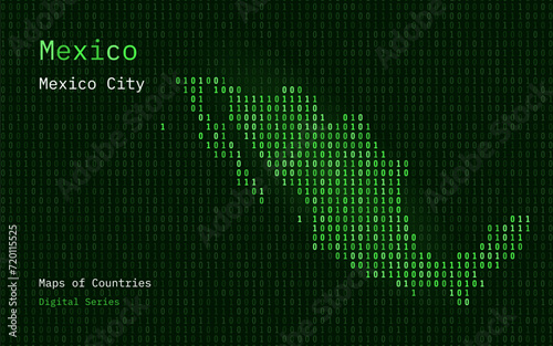 Mexico Map Shown in Binary Code Pattern. TSMC. Blue Matrix numbers, zero, one. World Countries Vector Maps. Digital Series