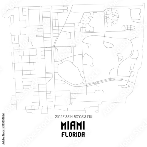 Miami Florida. US street map with black and white lines.