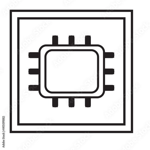 Microchip Processor Outline Icon, Computer Component Symbol Graphic