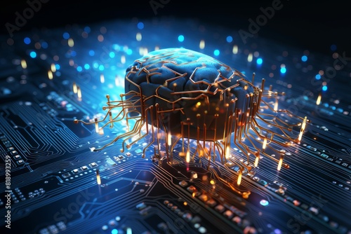 Microchips and computer boards. Chip for implementation in new technologies. Concept: computer programs and virtual processes.
