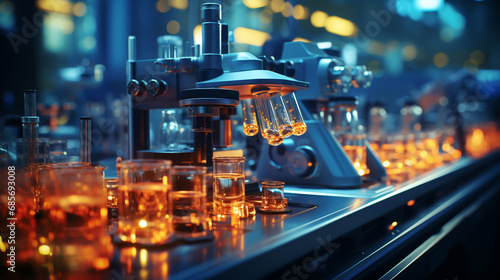 Microscope and different test tubes.