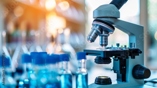 Microscope and research equipment in a biochemistry lab