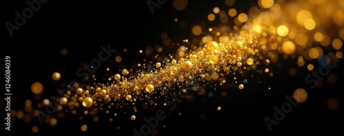 Microscopic gold particles suspended in air over black background, particles, micro, shine