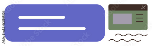 Minimal layout featuring a large text box, compact UI panel, and decorative wavy lines. Ideal for web design, UX concept, user interface, navigation, creativity, organization simple flat metaphor