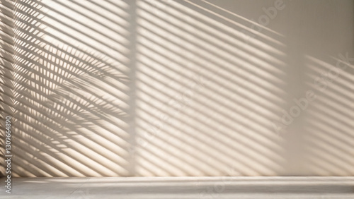 Minimal shadow patterns from window blinds create artistic effect on wall