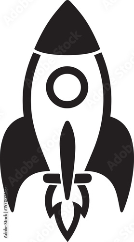 Minimal Silhouette Rocket Logo Vector Illustration – Flat Black Space Shuttle Icon Isolated on White Background – Simple, Clean, Editable Graphic for Startup, Tech, Innovation, and Space Exploration B