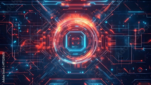 Minimal tech symbols in a symmetrical pattern on a futuristic background