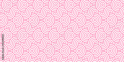 Minimal Vector overlapping Pattern diamond geometric pink color spiral line waves abstract wave line. seamless pink tile stripe overlap creative retro circle line fabric pattern white background.