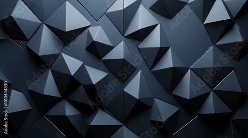 Minimalist 3D black diamond texture, sharp angular shapes arranged in a seamless gradient, reflecting light subtly, dark and elegant background