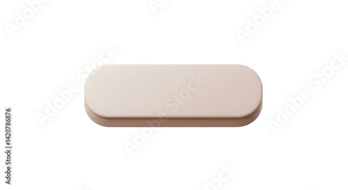 Minimalist 3D button-style rectangular UI element in soft beige color isolated on white background, perfect for app interface mockups, website UI components, and mobile button designs
