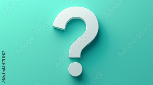 Minimalist 3D White Question Mark on Light Green Background with Ample Copy Space for Text