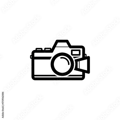 Minimalist Camera Outline Icon White Line Black Background