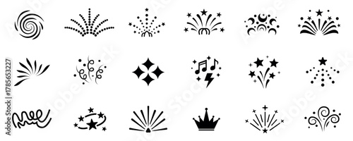 Minimalist celebration and party icon set, black monochrome festive elements