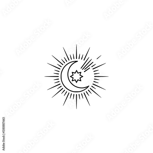 Minimalist Celestial Line Art: Crescent Moon & Starburst